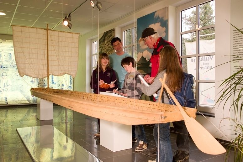 In Plaidt befindet sich das Infozentrum, oftmals die erste Anlaufstelle für Besucher*innen im Vulkanpark. Ein Film gibt Einblicke in die Vulkanologie und die Ausstellung "Archäologie" gibt Einblicke in die Abbaugeschichte von Vulkangestein.