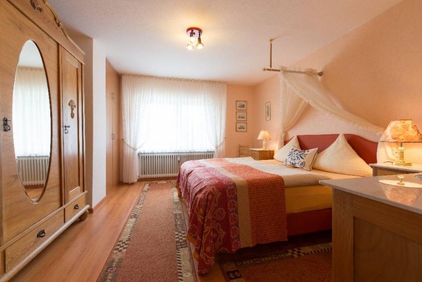 - romantisches Schlafzimmer mit bequemem Boxspring-Betten in bequemer Höhe