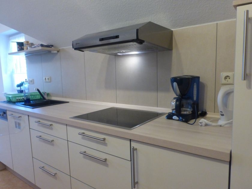 - voll ausgestattete Küchenzeile inkl. Herd, Kaffeemaschine, Toaster, Eierkocher, Mikrowelle, Spülmaschine und Kühlschrank