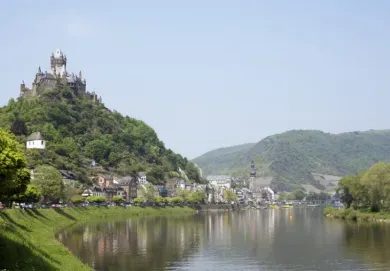 • Majestätisch erhaben thront die Reichsburg Cochem über dem Moseltal.