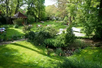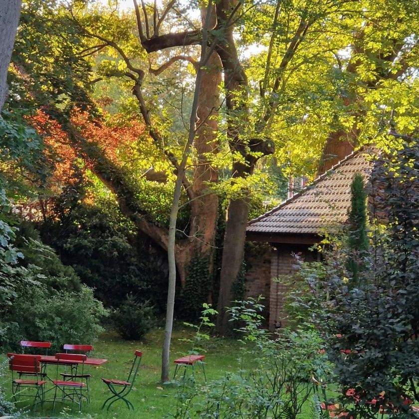 Nur ein Schritt und Sie sind im Grünen. Der Park - angelegt vor über 120 Jahren - ist mit seinen 2500qm der ideale Rahmen für Ihre Feier im Grünen. Er sorgt für ein unvergleichliches Ambiente und bietet von dem Grillraum, der Terrasse, über die Tanzfläche bis hin zu lauschigen Plätzen am Rande alles für Ihre gehobenen Ansprüche. Und selbst im heißesten Sommer sorgen die uralten Bäume für angenehme Temperaturen.