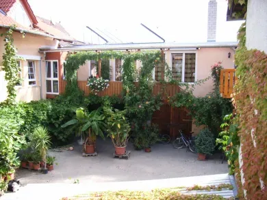Die Wohnung mit 2 Zimmern, Küche, Dusche/WC (70 qm) ist großzügig ausgestattet und im Landhausstil eingerichtet. Auf dem mit Kletterpflanzen bewachsenen Balkon zum Innenhof können Sie nachmittags Sonne tanken oder laue Abende bei einer guten Flasche Wein genießen. Unser wild romantischer Garten mit altem Obstbaumbestand, Liegewiese, Teich und Rebsortenzeile grenzt direkt an die Weinberge. Grillecke und Liegemöbeln stehen Ihnen zur Verfügung.