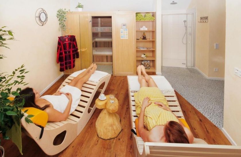 Auch in unserem Wohlfühlbereich unterm Glockenturm. Hier können Sie bei Massageanwendungen entspannen, ein romantisches Bad zu zweit mit Ihrem Partner genießen oder im Fitnessraum an einem der drei Geräte trainieren. Auch eine Infrarot-Sauna erwartet Sie dort.