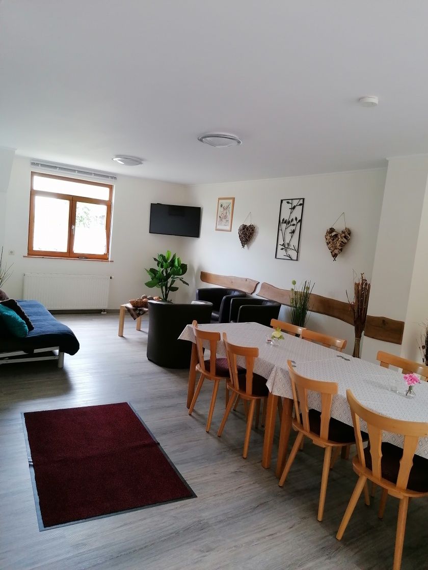- Der großzügige Aufenthaltsraum, 2020 renoviert, bietet ausreichend Platz für bis zu 30 Personen, wenn alle drei Ferienwohnungen gemeinsam gemietet werden.