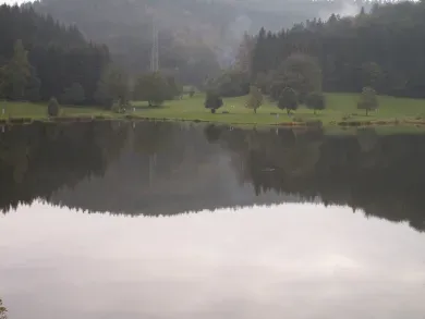 Der Marbach Stausee liegt im Odenwald zwischen den beiden Orten Oberzent und Mossautal.