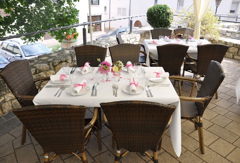 Hier, im historischen Küsterhaus direkt neben der katholischen Pfarrkirche, erstrecken sich die liebevoll dekorierten Gasträume über drei Etagen. Geadelt mit dem Tourism-Award der Great Wine Capitals schenkt Ihnen Marijana Christgen hier Wohlfühlmomente. Im Winter sitzen Sie behaglich neben dem Ofen, Lammfelle und die nette Ausstattung lassen Sie sofort heimisch fühlen. Dazu kommt die regional geprägte und mediterran aromatisierte Küche von Lucas Christgen. Kräftige Ochsenbacken, frische Artischocken oder Geflügel aus regionaler Zucht werden Sie begeistern.