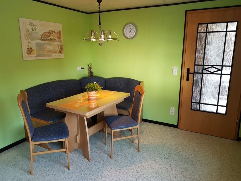 - Komplett eingerichtete Küche mit Essecke (Mikrowelle, Geschirrspüler, Gefrierschrank)