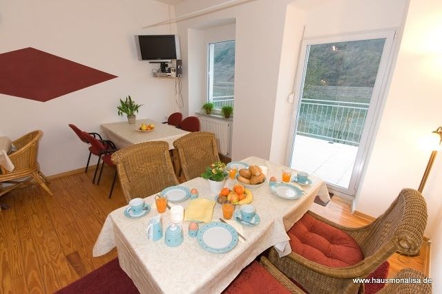 Unser Haus steht an der Moseluferstraße, die direkt am Moselufer entlang führt. Von der weitläufigen Dachterrasse hat man eine wunderbare Aussicht auf diesen Märchenhaften Fluss. Hier können Sie ein Glas Moselwein, Bier oder ein anderes Getränk genießen, aber das kann auch in der gemütlichen Wohnküche geschehen. Im Haus kostenloses WLAN.