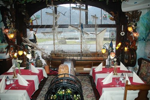 Das gemütliche Ambiente mit reichhaltiger Dekoration hat schon manchen Gast länger verweilen lassen, als geplant. Hier von den Plätzen an den großen Aussichtsfenstern hat man einen fantastischen Blick auf den "Vater" Rhein und die Weinberge. Sehr reizvoll besonders im Herbst, wenn die Natur die Weinberge in sämtliche Farben taucht.