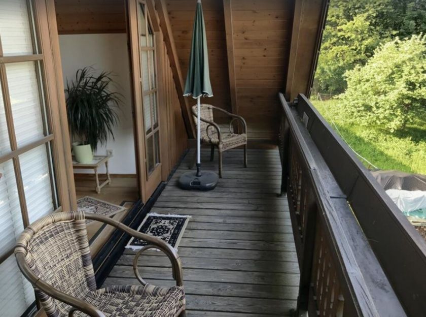 - Wohnzimmer: In unserer gemütlich eingerichteten Dachgeschosswohnung lässt es sich hervorragend ausspannen. Am Abend bei einem schönen Gläschen Pfälzer Wein einfach mal die Seele baumeln lassen. Das Wohnzimmer hat ein Schlafsofa, einen Flachbild TV und ein Radio. Vom Wohnzimmer aus hat man Zugang zum Balkon mit unverbaubarem Blick.
