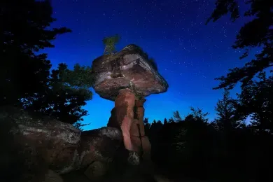 Der Teufelstisch ist der wohl beeindruckendste Felsen der Pfalz und das einzige offizielle Geotop der Region. Er gilt als eines der bekanntesten Wahrzeichen der Pfalz.