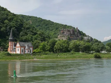 Auf einem Felsvorsprung mit Blick auf Trechtingshausen thront die ehemalige „Falkenburg“ am östlichen Abhang des Binger Waldes. Errichtet im 11. Jahrhundert und als Raubritternest berüchtigt, verdankt sie nach wechselvoller Geschichte ihr heutiges Aussehen dem Industriellen Dr. Nikolaus Kirsch-Puricelli. 1899 wurden die Wohnräume und ein Aussichtsturm ausgebaut. Augenfällig ist die 16 m hohe und fast 100 Jahre alte Schildmauer.