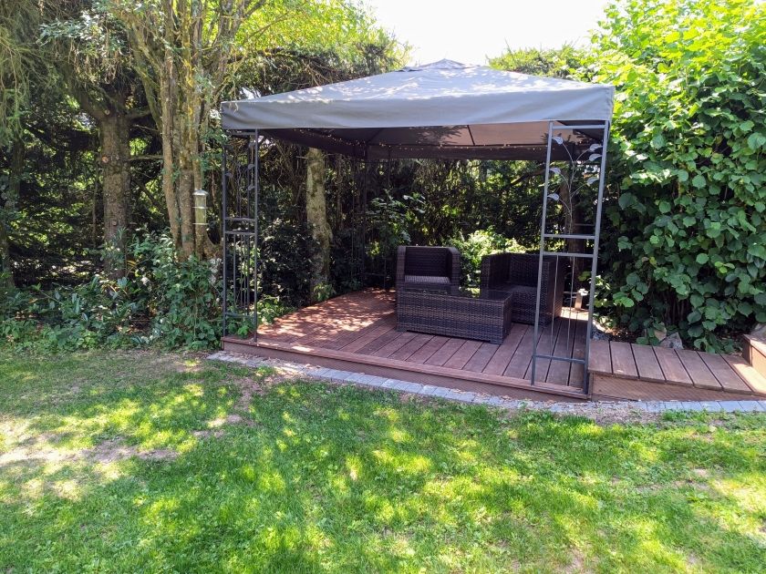 - Ausstattung: Einbauküche, Kücheneinrichtung für 4 Personen, Bad mit ebenerdiger Dusche, Spülmaschine, Kaffeemaschine, Wasserkocher, Mikrowelle, Toaster, Elektroherd mit Backofen, Esstisch für 4 Personen, Sofa mit Schlaffunktion, LCD Fernseher mit SAT TV, Radio mit CD-Player, WLAN verfügbar, Fön, Gartenmöbel, Grill, Insektenschutzgitter