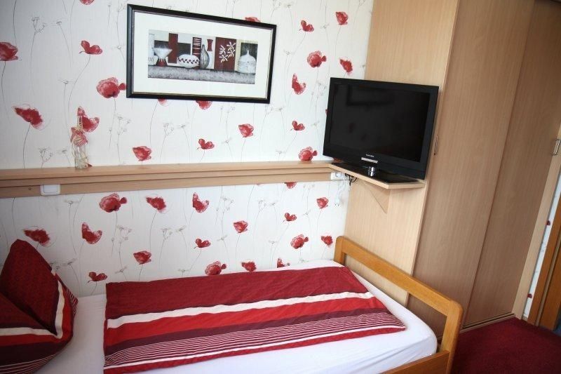 Das Einzelzimmer ist mit Dusche und einem Waschplatz ausgestattet. Das Einzelzimmer ist auf Anfrage auch als Doppelzimmer buchbar. Ein Doppelzimmer ist mit Balkon mit Tisch und Stühlen ausgestattet. Unseren Gästen steht ein gemeinschaftlich nutzbarer Balkon zur Verfügung mit Tisch und Stühlen. Wasserkocher, Kühlschrank, Kaffeemaschine und Geschirr vorhanden (keine Kochmöglichkeit).