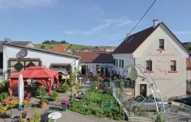 Internetanschluss, TV, Bad und WC sowie eine individuelle farbliche Gestaltung: Dadurch zeichnen sich die 19 Zimmer mit insgesamt 39 Betten im neu eröffneten Gästehaus hier in Hackenheim aus. Das Haus schließt direkt an das Weingut mit der 2006 eröffneten Straußwirtschaft an.