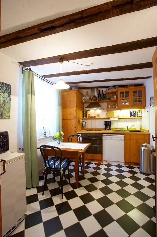 Diese Ferienwohnung (ca. 50 qm) in unserem über 300 Jahre alten Fachwerkhaus hat ein Schlafzimmer, ein Wohnzimmer, eine geräumige Küche, Flur, Dusche mit WC und Zentralheizung.