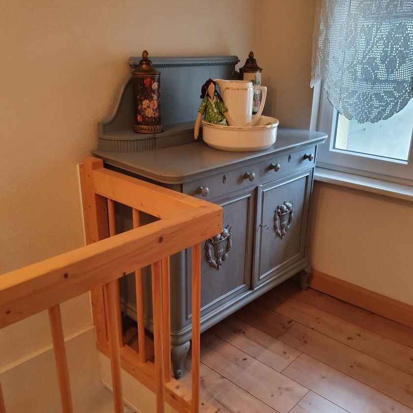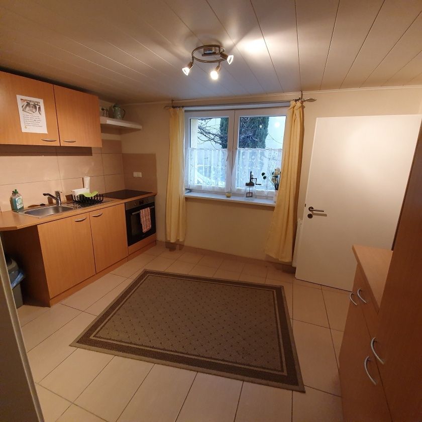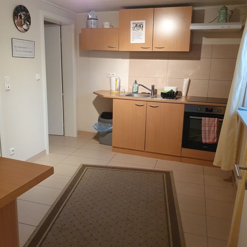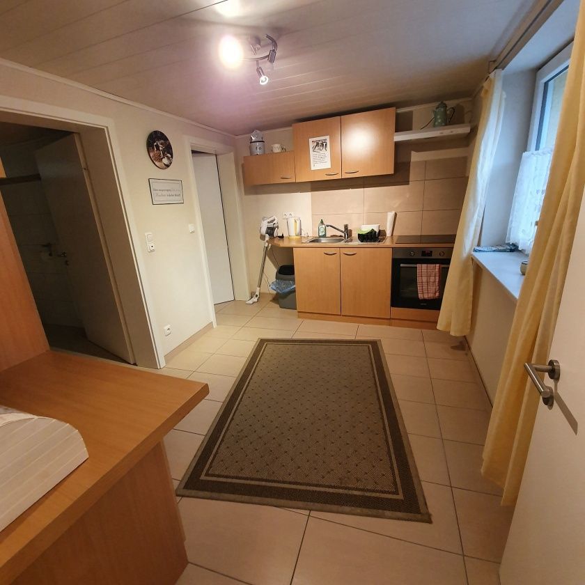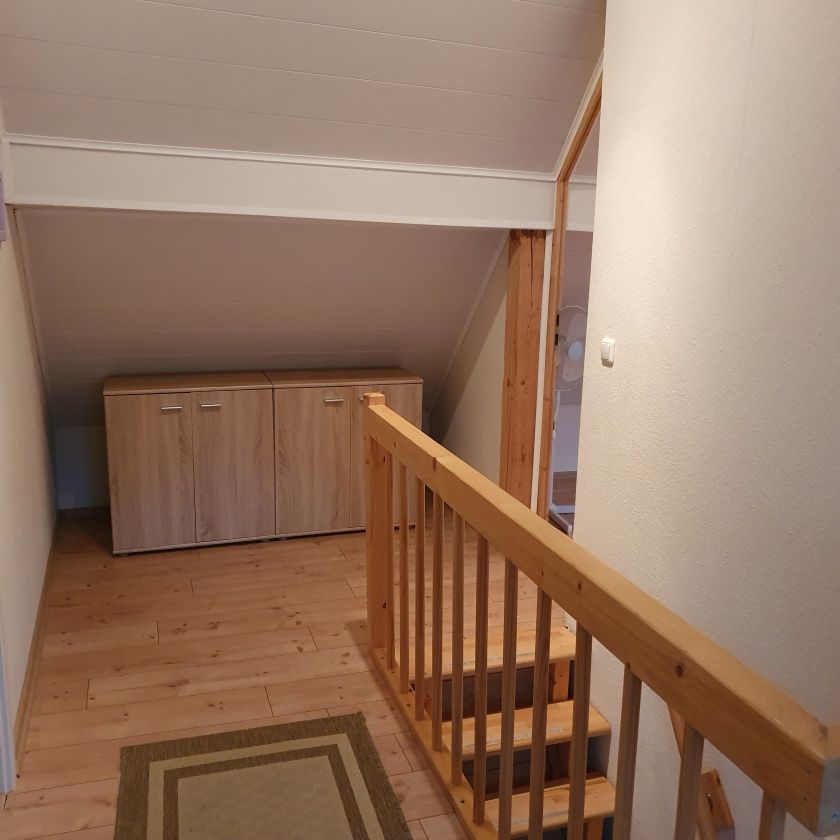 Das Gästehaus kann bis zu fünf Personen beherbergen, welches durch einen eigenen separaten Eingang erreicht wird. Es verfügt über zwei Doppelschlafzimmer und ein Einzelschlafzimmer. Für eine weitere gemütliche Atmosphäre sorgt das im Erdgeschoss liegende große Wohnzimmer. Ferner ein Tageslicht Duschbad mit WC, sowie ein weiteres separates WC. Für die Selbstversorgung ist eine vollständig eingerichtete Küche im Erdgeschoss verfügbar, selbstverständlich mit Backofen.