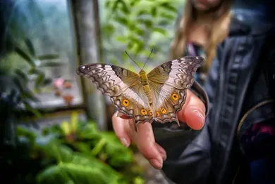 - Nach deinem Rundgang kannst du dich im Eiscafé entspannen oder in der Schmetterlingsboutique nach besonderen Erinnerungsstücken stöbern. Von kunstvollen Schmetterlingsmotiven bis hin zu spannenden Büchern über diese faszinierenden Wesen – hier findest du garantiert ein passendes Souvenir.