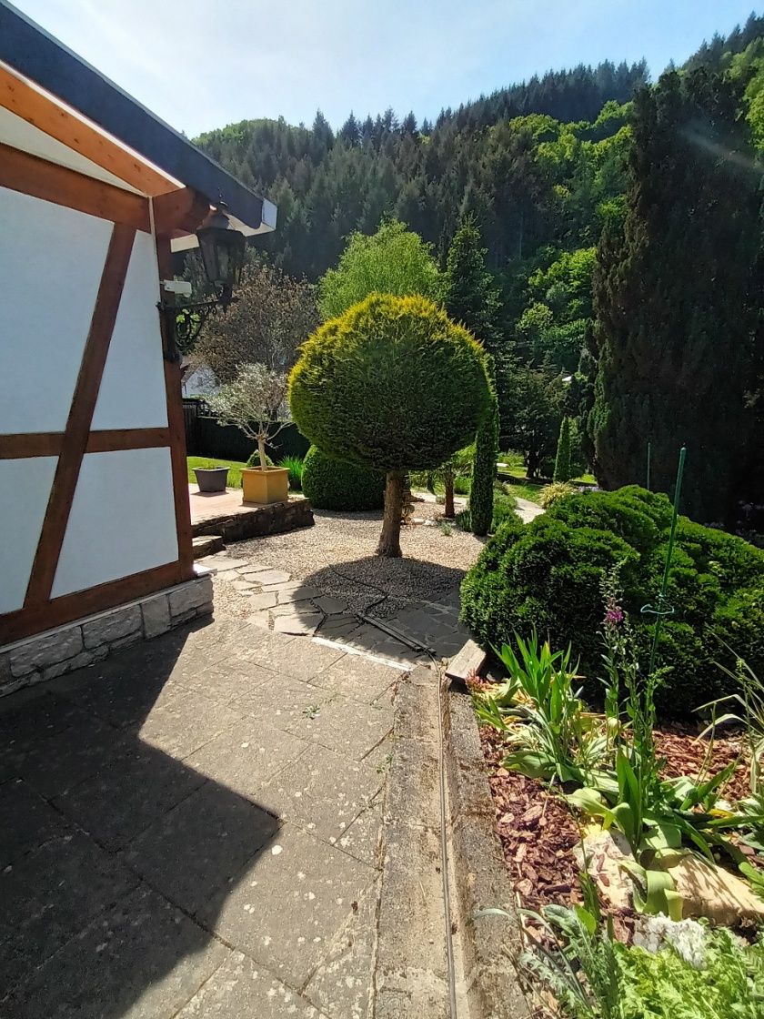 - Von der davor liegenden großen Terrasse mit Gartenmöbeln und Sonnenschirm, hat man einen herrlichen Ausblick auf den Garten und Natur pur.