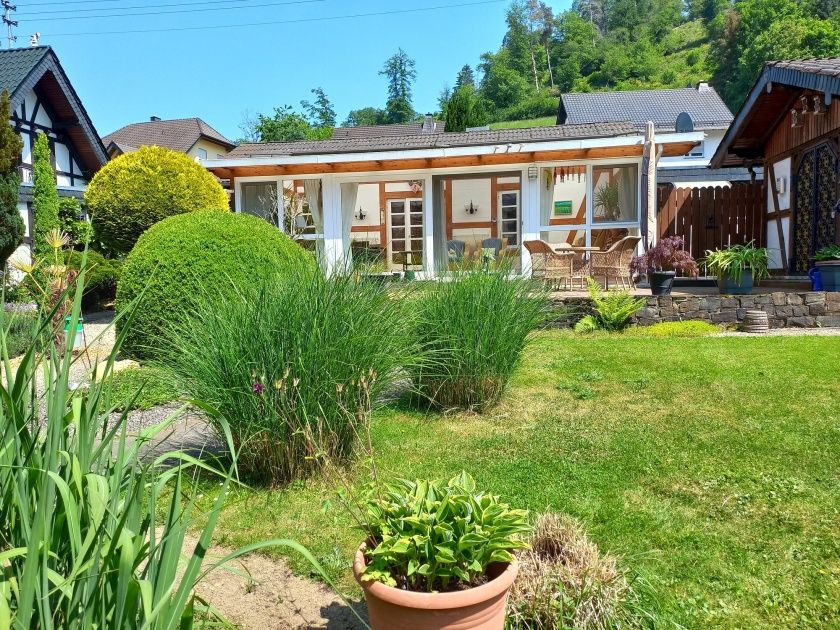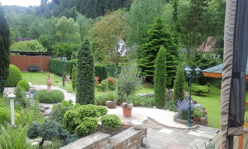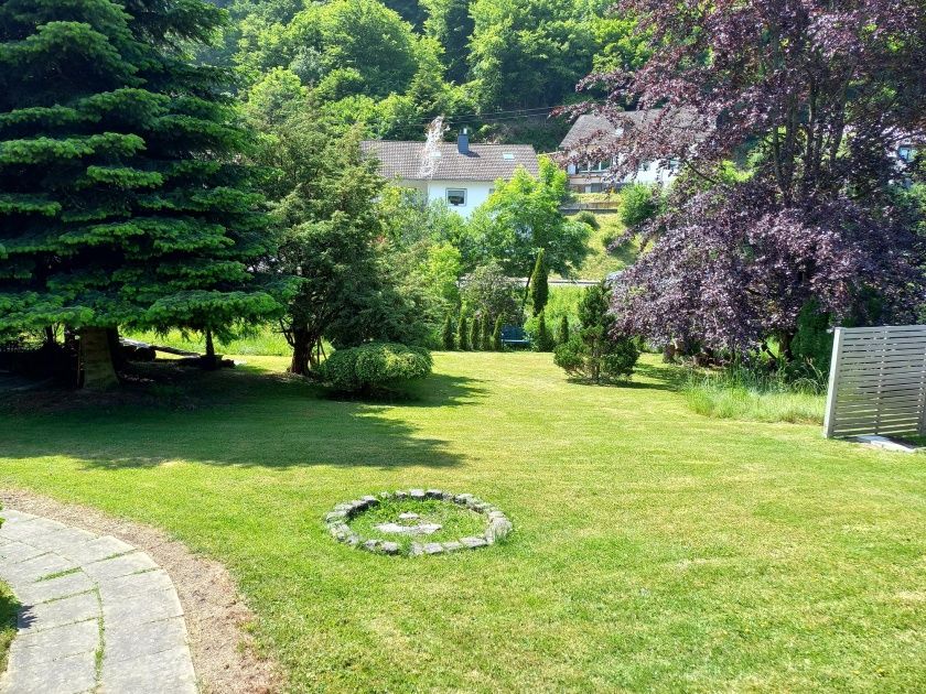 Die Ferienwohnung ist in einem separaten Gebäude mit wunderschön angelegtem Garten auf einem ca. 2600 qm großen Grundstück mit angrenzendem Bach.