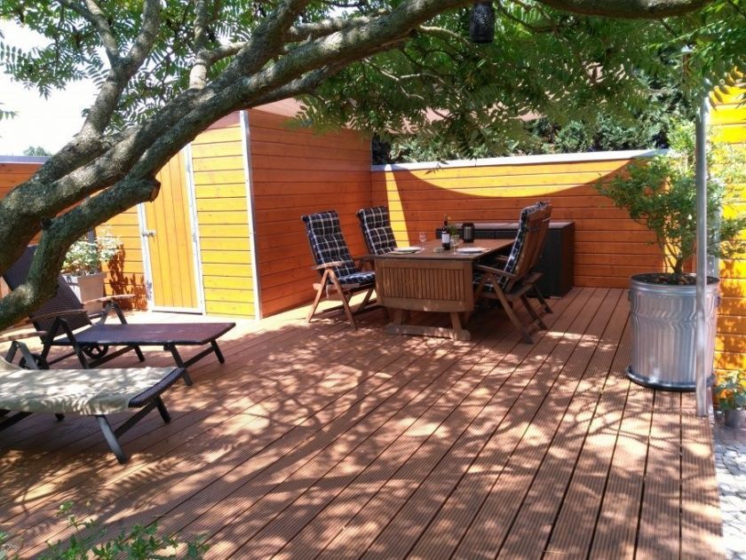 - So wurde 2015 die neue große Holzterrasse im Garten eingeweiht und 2017 entstand der Fahrradunterstellplatz.