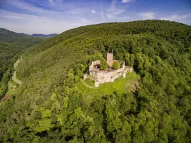 Die imposante Höhenburg Landeck thront majestätisch über dem malerischen Örtchen Klingenmünster in der Südpfalz.