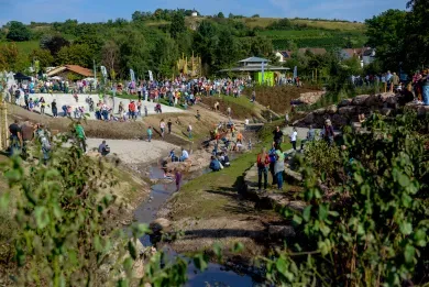 In Ilbesheim befindet sich mit 18.500 qm eine der größten Alla Hopp Anlagen. Insgesamt bieten 27 Stationen für jung und alt Herausforderungen und Entspannungselemente. Für die kleinen Gäste gibt es kreative Elemente mit dem Urwaldlabyrinth, dem Sand- und Matschspiel und der schwingenden Baumstammlandschaft.