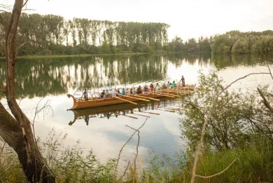 Sie fahren auf einer Originalgetreuen Nachbildung eines römischen Kriegsschiffs der Spätantike durch die herrliche Landschaft der Südpfälzer Rheinauen. Dabei können Sie auch selbst Hand anlegen und zum Ruder greifen, ideal zum Teambuilding für Vereine und Firmen. Solche Gruppenfahrten sind ab 16 Personen möglich. Stets dabei ist eine ausgebildete Crew, die Hilfestellung bietet.