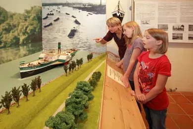 Das Rheinauemuseum beleuchtet die bewegende Geschichte von Neuburg, dass durch die Bewegung des Rheins von der rechten Uferseite auf die linke Uferseite wechseln musste.