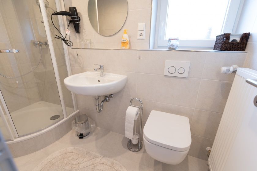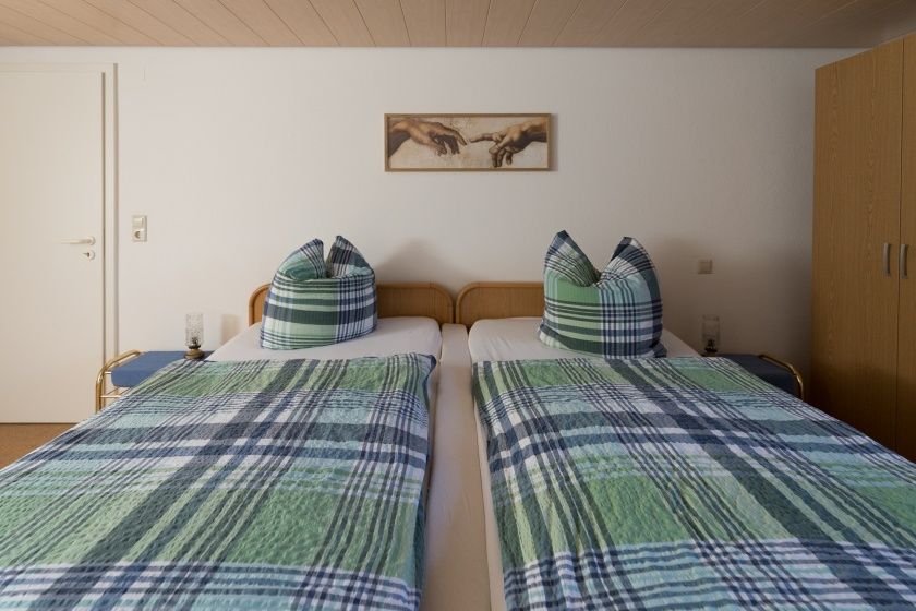 - Der Zugang zum Gästezimmer erfolgt je nach Buchungsvariante über die Ferienwohnung oder den Hausflur. Das Gästezimmer bietet Platz für bis zu zwei Personen.