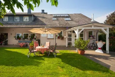 • Auf der sonnigen Terrasse vor unserem Haus haben Sie die Möglichkeit bei einem guten Glas Wein so richtig auszuspannen.
