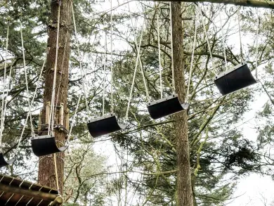 Im Kletterwald gilt es bis zu 120 Übungen zu meistern. Außergewöhnlich: Die Kletterwand wurde an einem 1906 erbauten Aussichtsturm errichtet und hat somit historische Bedeutung. Dabei sind die Parcours in unterschiedlichen Schwierigkeiten unterteilt, so dass Anfänger und Profis gleichermaßen auf ihre Kosten kommen.