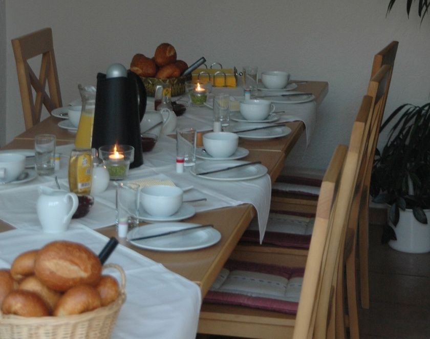 Für einen guten Start in den Tag servieren wir Ihnen ein ausgewogenes und reichhaltiges Frühstück mit hausgemachter Marmelade, Eiern von unseren Hühnern und anderen rheinhessischen Spezialitäten.