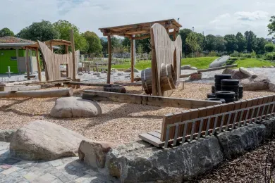 Die Anlage besteht aus 21 Erlebnisstationen, die für unterschiedliche Altersgruppen geeignet sind. So reicht das Spektrum vom Rutschhügel, über Slackline bis zum Boule. Alle Stationen sind liebevoll gestaltet und fast immer barrierearm.
