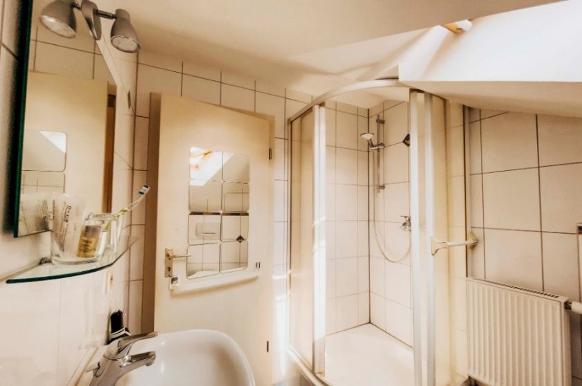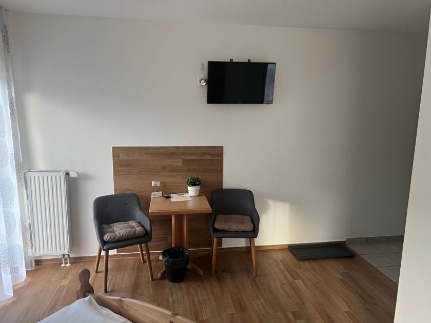 - Großes Bad mit ebenerdiger Dusche, WC und Handtuchheizkörper sowie Fön und kostenfreien Badartikeln (Seife, Shampoo, etc.). Kostenfreies WLAN, Flachbild-TV, SAT-TV, zwei Betten á 90x200 cm, Kleiderschrank, Tisch und Stuhl.