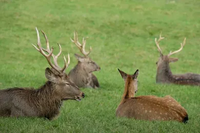 Bei einem Spaziergang durch den Park begegnen Ihnen Rotwild, Damwild und sogar Mufflons.