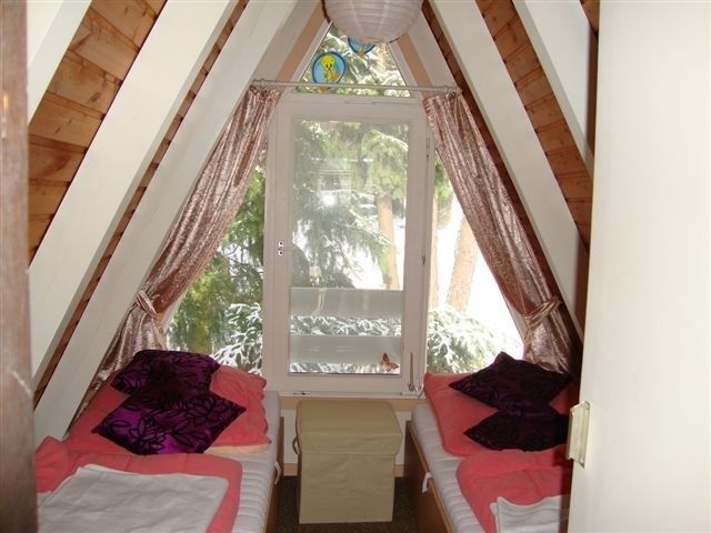• Die Schlafzimmer erreichen Sie über eine Schwalbenschwanztreppe. Im Obergeschoss sind 2 Schlafzimmer mit je zwei Betten, davon ist ein Zimmer etwas größer.