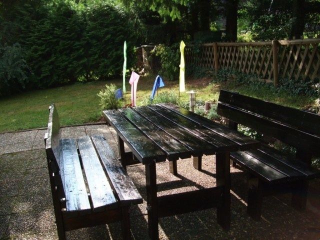 • Im Garten sind zusätzlich noch Liegen und unter dem Balkon eine kleine Hollywoodschaukel. Ideal um z.B. Rehe, Hasen, Fasanen, Glühwürmchen etc. zu beobachten.