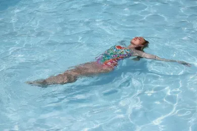 Das Schwimmbad besteht aus einem 25 Meter langen Sportbecken, einem Fitness-Relax-Becken mit einer Wassertemperatur von 33 °C und einem Eltern-Kind-Bereich. Besonders beliebt ist die 80 Meter lange Black-Hole-Riesenrutsche.