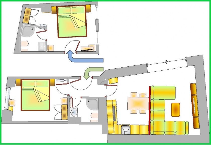 Ein zweites separates Schlafzimmer/ Bad (15m²) bietet Platz für weitere 2 Personen.