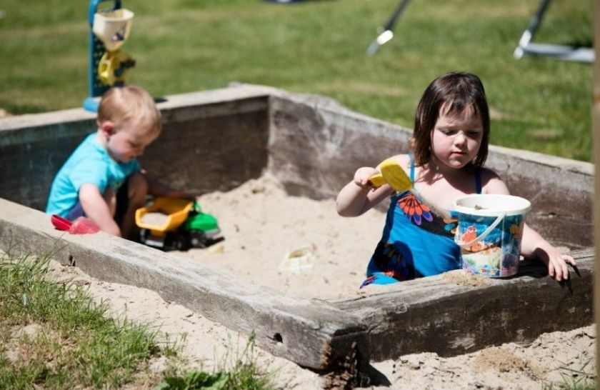 Zahlreiche Sport- und Spielmöglichkeiten auf dem Campingplatz! Die Kinder können rutschen, im Sandkasten spielen oder an der Kletterwand klettern.