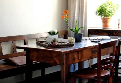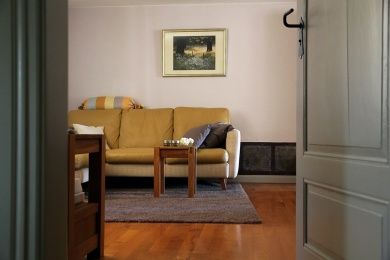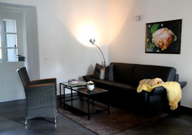 Diese, im Obergeschoss gelegene Wohlfühlwohnung auf einer Ebene, ist für zwei Personen mit Kleinkind bestens geeignet und verfügt über ein großzügiges, mit restaurierten Möbeln ausgestattetes Schlafzimmer (für Allergiker geeignet), ein exklusives Bad mit Badewanne, Dusche und WC, einer hellen, freundlichen Küche mit Leseecke und Relaxsessel und einem gemütlichen Wohnzimmer. Historische Architekturelemente bieten auch hier einen besonderen Charme.