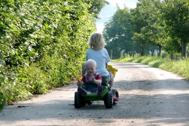 - Spielscheune mit Tretfahrzeugen und Trampolin