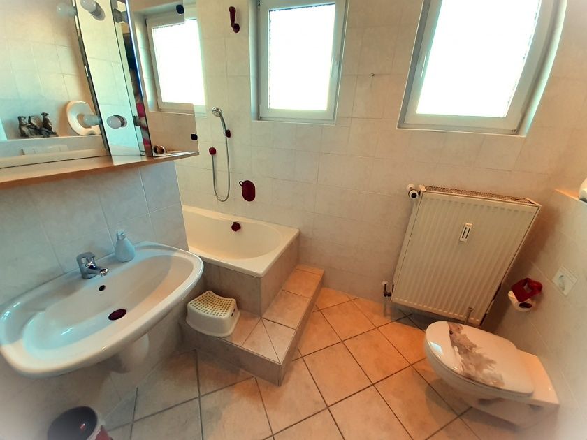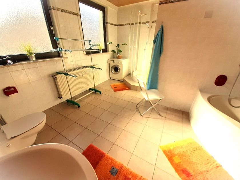 • großes Bad  mit Eckbadewanne und Eckdusche. Dieses stellen wir Ihnen ab 4 Erwachsenen zusätzlich zur Verfügung (wenn Sie unter 4 Erwachsene sind können Sie dieses für einmalig 25 € dazu buchen)