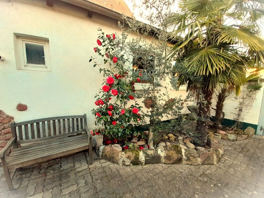 • Ferienhaushof in mediterranem Ambiente mit Palmen, Agave, Olive u. a.