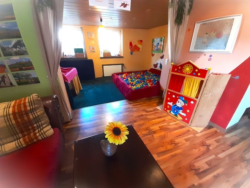 • Spielzimmer 2 ( kleine Rutsche, Kinderküche, Maltisch, Spieletisch mit Mensch-ärgere-dich-nicht / Schach / Dame)