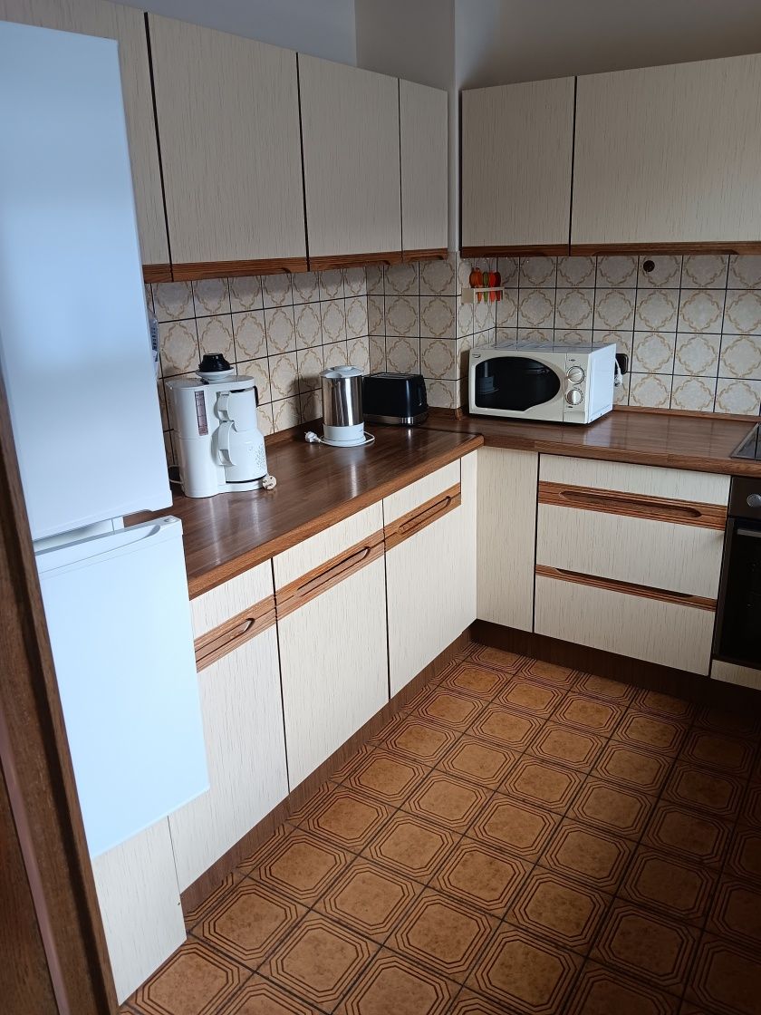 - Komplett eingerichtete Küche mit Mikrowelle, Herd, Backofen