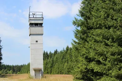 - Beobachtungsturm, -bunker, Grenzsäule und Grenzpfosten