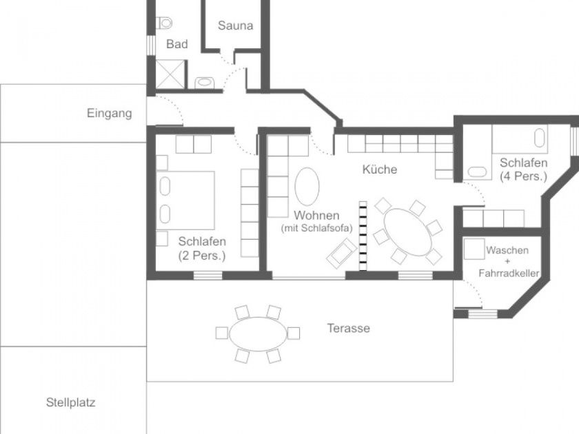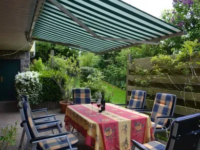 Entspannen können Sie auf der großen, voll möblierten Terrasse mit Markise oder in der Sauna, deren Nutzung wir mit 10,-- Euro berechnen. Im Garten befindet sich ein Grill.