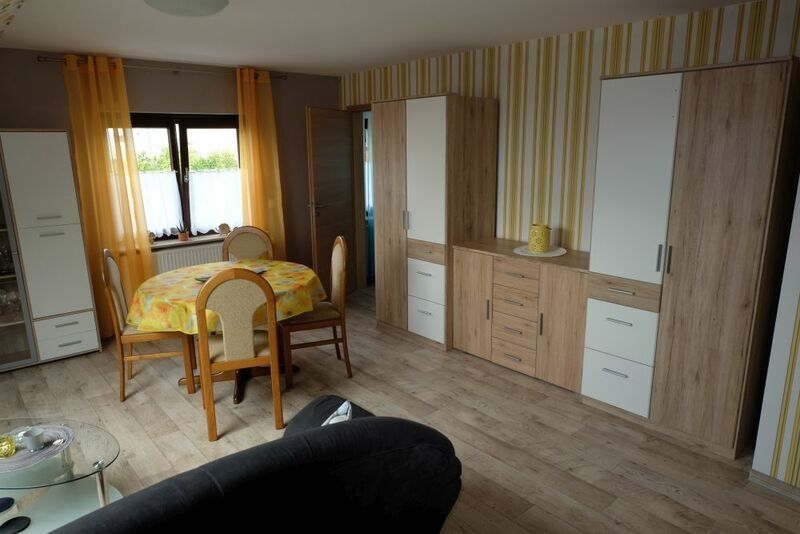 Die 70 qm große Nichtraucherferienwohnung besteht aus einem Schlafzimmer mit Doppelbett, einem großen Bad mit Dusche, einem Wohnzimmer mit separatem Schlafsofa und einer voll eingerichteten Wohnküche mit Geschirrspüler, Esstisch und Fernseher.